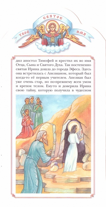 Святая Ирина родилась в I веке и была дочерью язческого правителя города Мигдонии. Оно с юных лет уверовала во Христа и приняв много мучений за имя Христово и многих обратив к Истинному Богу. Ей было открыто Богом, что дни ее земной жизни заказнчиваются. Тогда она попросила закрыть себя в глубокой пещере и там мирно отошла ко Господу. Об этой святой пойдет речь в этой книге.